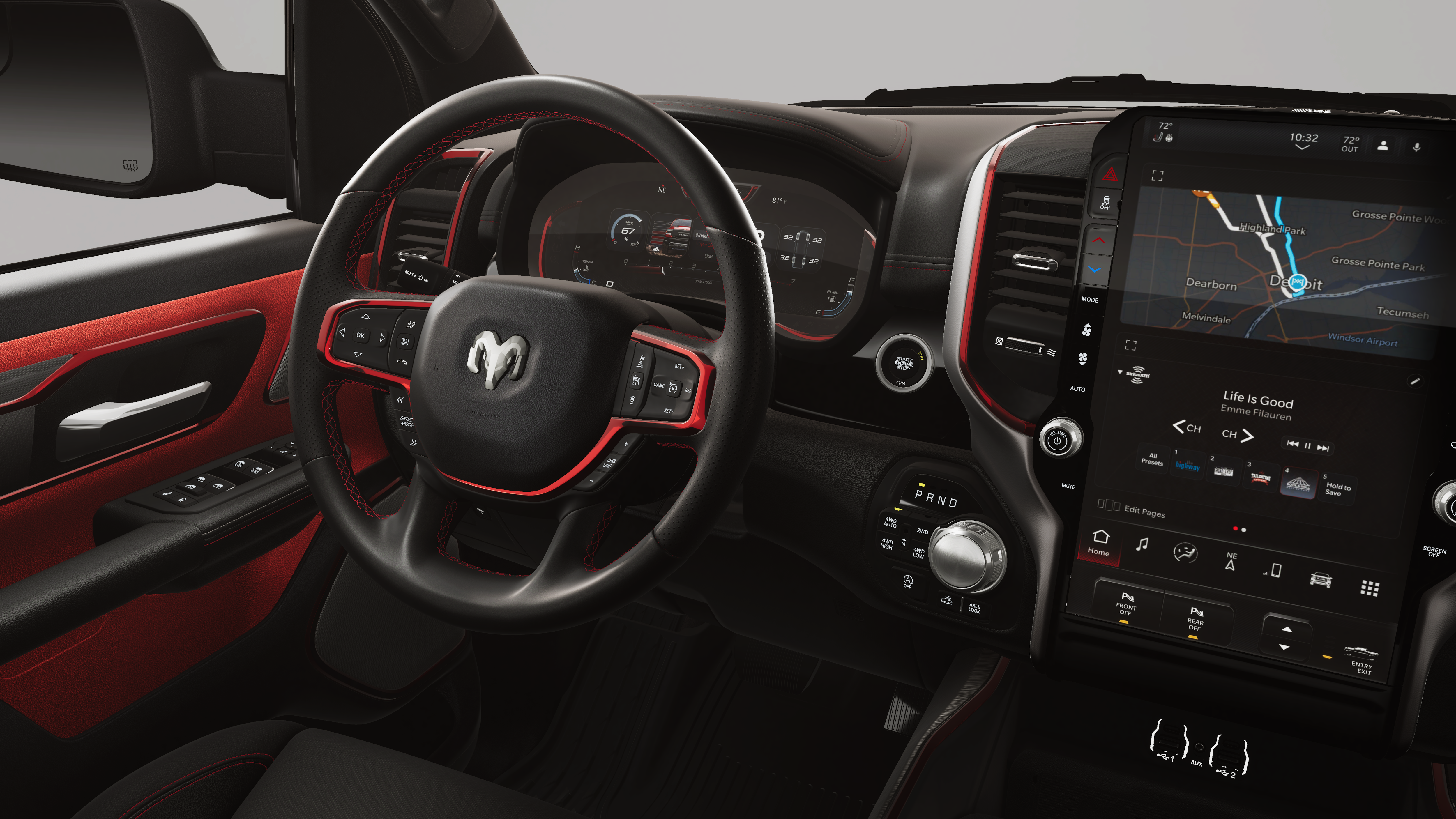 - 4-Wheel Disc Brakes w/4-Wheel ABS, Front Vented Discs, Brake Assist, Hill Descent Control, Hill Hold Control and Electric Parking Brake